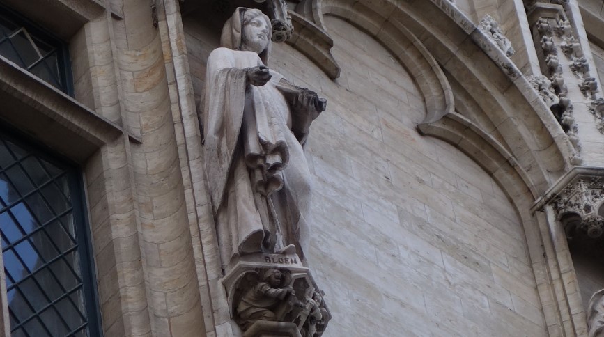 If you’ve ever wandered past Brussels City Hall, you might have noticed a small statue on its façade — a woman’s figure perched on the second floor, just to the right of the central window on Rue de la Tête d’Or. Her name? The Bloemardinne. And behind that quiet masonry hides one of Brussels’ most fascinating, and misunderstood, women.